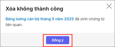 Bài viết này hướng dẫn anh/chị xem và truy cập nhanh các chứng từ phát sinh liên quan ngay trên màn hình cảnh báo khi xóa bảng lương, giúp việc kiểm tra và xóa chứng từ được thực hiện nhanh chóng, chính xác và thuận tiện hơn.