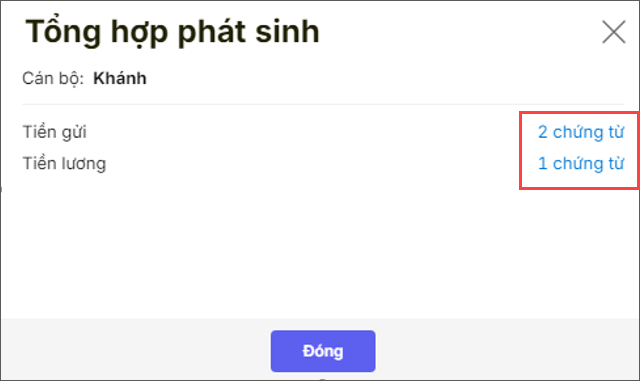 Bước 6: Sau khi kiểm tra xong các chứng từ thì nhấn Đóng