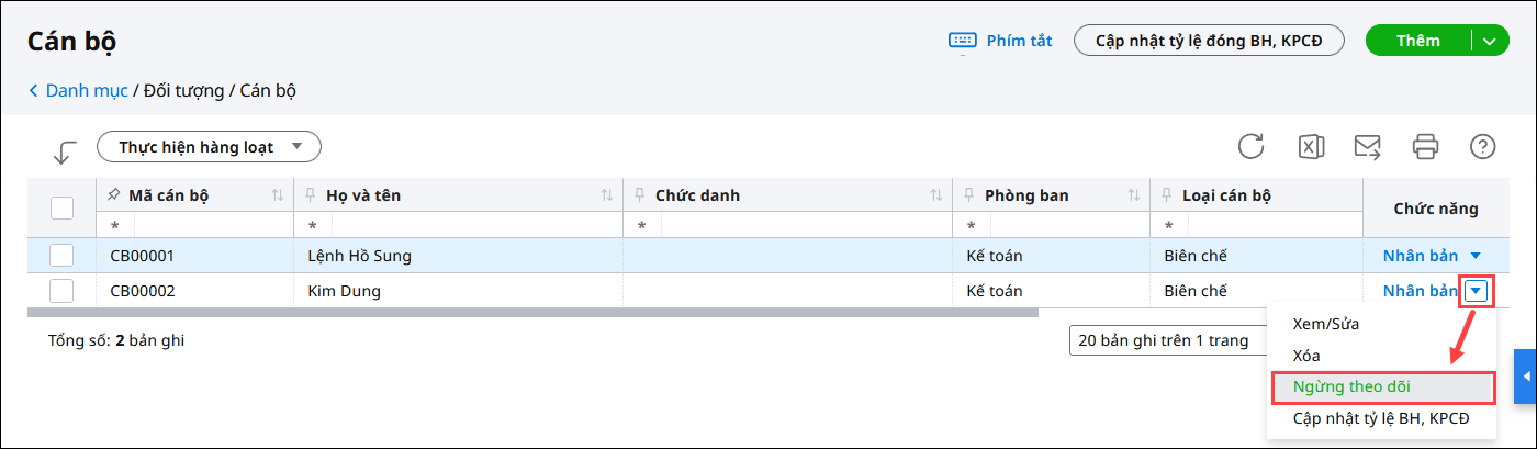 - Tôi muốn cập nhật lại Tỷ lệ đóng bảo hiểm, KPCĐ cho từng loại cán bộ thì làm như thế nào?