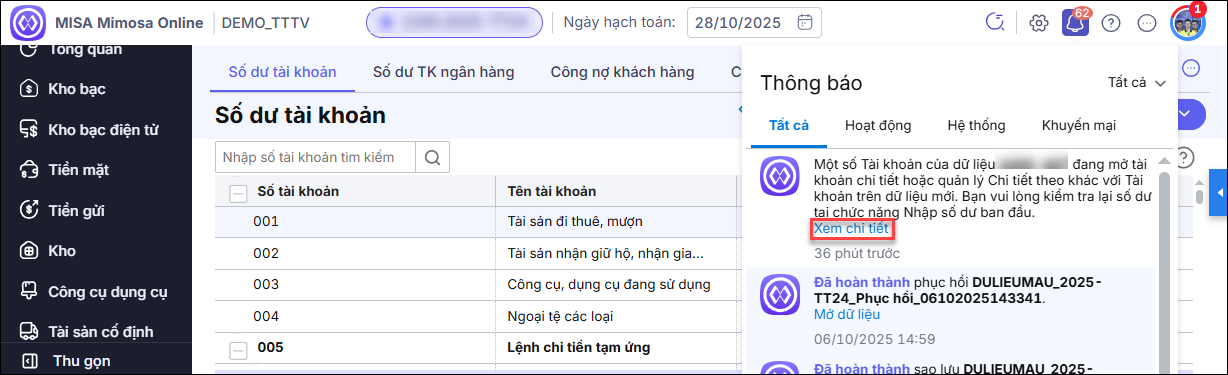Bước 1: Sau khi chuyển chế độ kế toán hay lấy số dư đầu năm từ chế độ cũ, hệ thống sẽ tự động chuyển số dư từ tài khoản cũ sang tài khoản mới theo chế độ kế toán mới, trong đó gồm các trường hợp như: