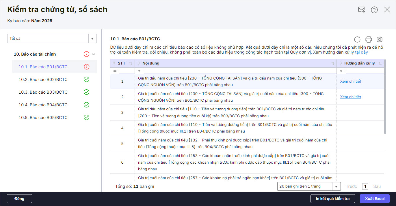 - Xem hướng dẫn kiểm tra báo cáo tài chính tại đây