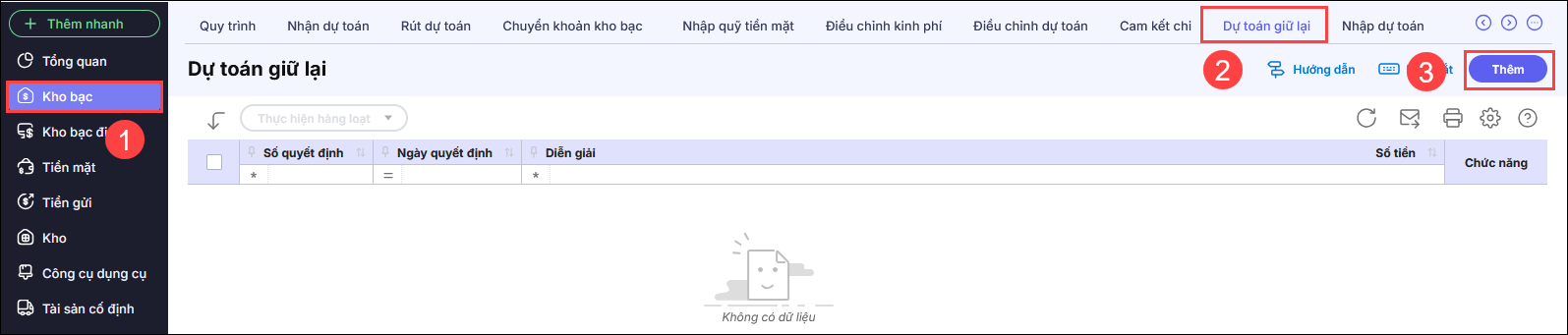 Bước 1: Vào phân hệ Kho bạc\Dự toán giữ lại.