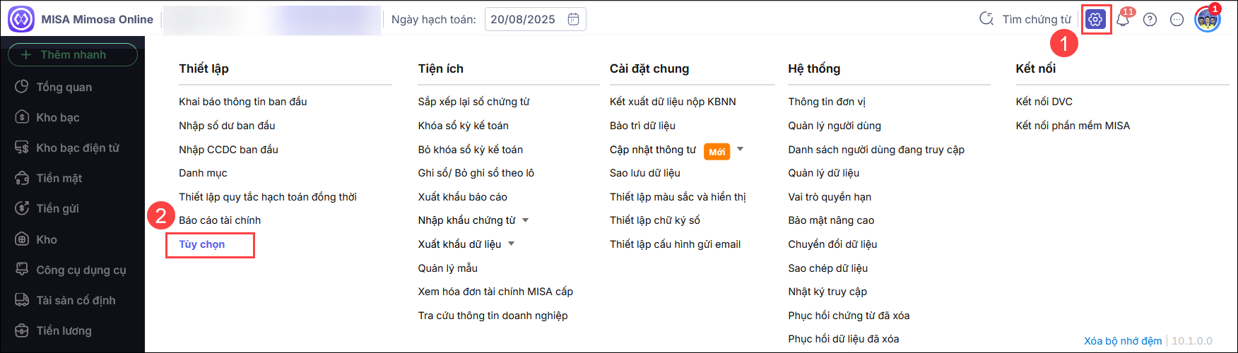 Bước 1: Vào biểu tượng Bánh răng ⚙️(góc phải phía trên)\Thiết lập\Tùy chọn