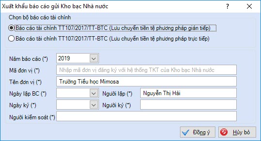 Kế toán muốn xuất khẩu được các báo cáo tài chính (TT 107/2018/TT-BTC) để nộp báo cáo cho kho bạc địa phương qua trang cổng thông tin điện tử hệ thống TKT theo quy định.