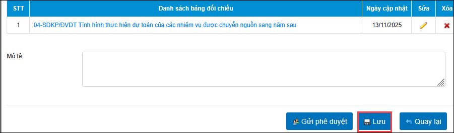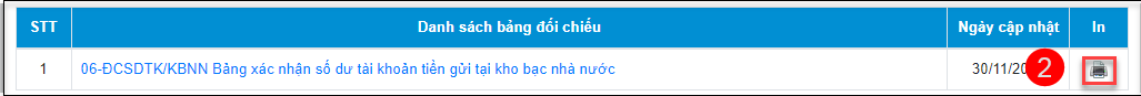 • Kích chuột vào biểu tượng In của mẫu đối chiếu NSD cần in.
