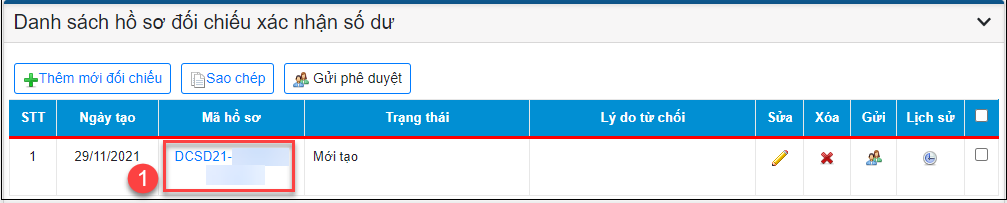 • Kích chuột vào mã hồ sơ.