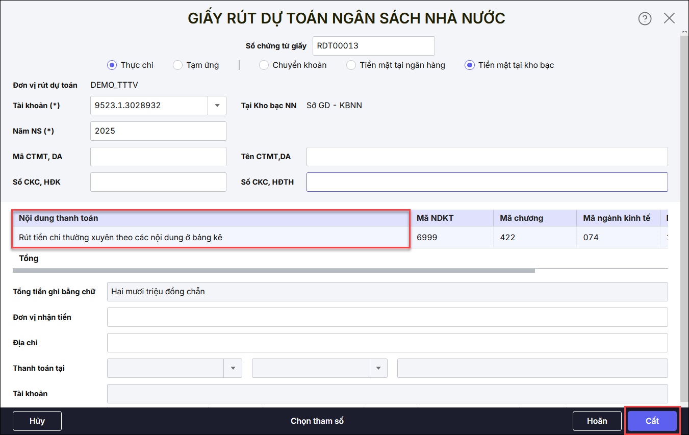 Bước 4. Sửa lại Nội dung thanh toán theo yêu cầu của Kho bạc.