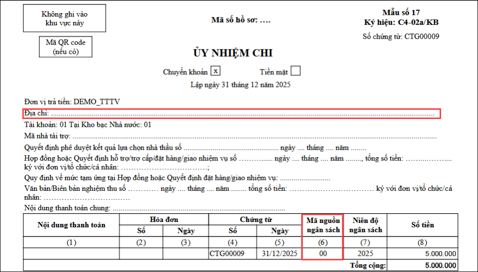 Bài viết này hướng dẫn anh/chị cách nhập liệu và tùy chỉnh hiển thị các thông tin trên chứng từ chi tiền gửi để lên đúng mẫu số 17 – Ký hiệu C4-02a/KB: Ủy nhiệm chi (Nghị định 347/2025/NĐ-CP) như:
