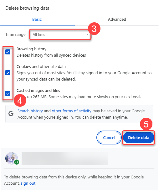 Lưu ý: Thao tác này sẽ xóa toàn bộ bộ nhớ đệm và cookies đã lưu trên trình duyệt Chrome. Điều này có thể khiến anh/ chị phải đăng nhập lại vào các trang web khác đã từng truy cập.