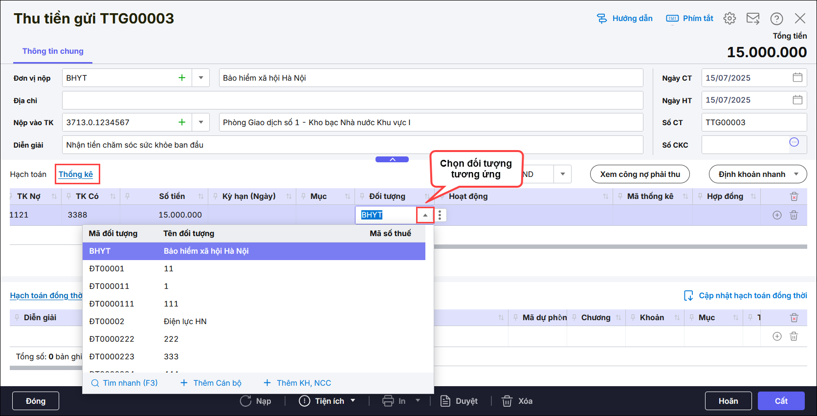 - Chọn Đối tượng tại cột Đối tượng và nhấn Cất