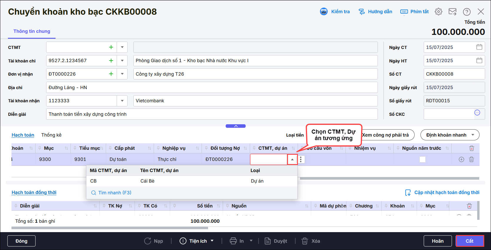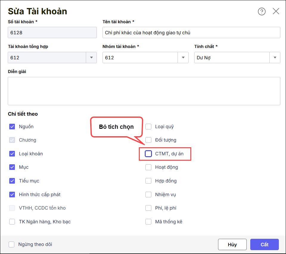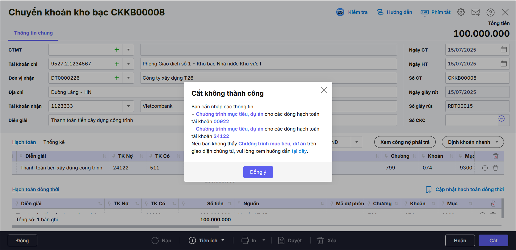 Bài viết này hướng dẫn anh/chị cách xử lý khi cất chứng từ phần mềm báo Cất không thành công : “Bạn cần nhập các thông tin Chương trình mục tiêu, dự án cho các dòng hạch toán tài khoản …”.