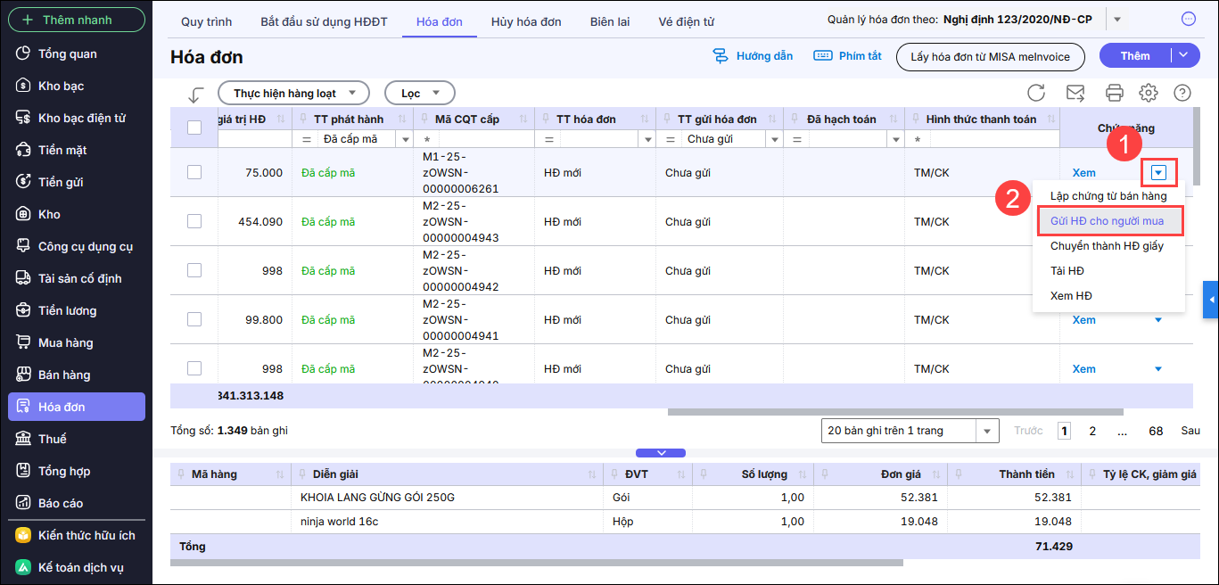 Bước 2: Chọn “Gửi HĐ cho người mua”.