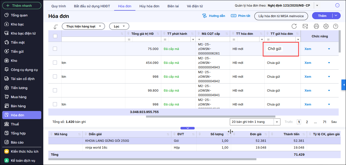 Bài viết này giúp Anh/Chị hiểu rõ nguyên nhân và cách xử lý trong trường hợp phần mềm hiển thị trạng thái “Chờ gửi” hoặc “Khách hàng yêu cầu gửi lại hóa đơn” trên danh sách hóa đơn.