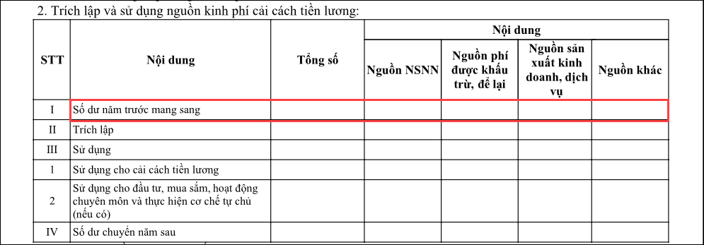 Vì vậy, việc không có số liệu ở chỉ tiêu “Số dư năm trước chuyển sang” của mục Trích lập và sử dụng nguồn kinh phí cải cách tiền lương thường là do: