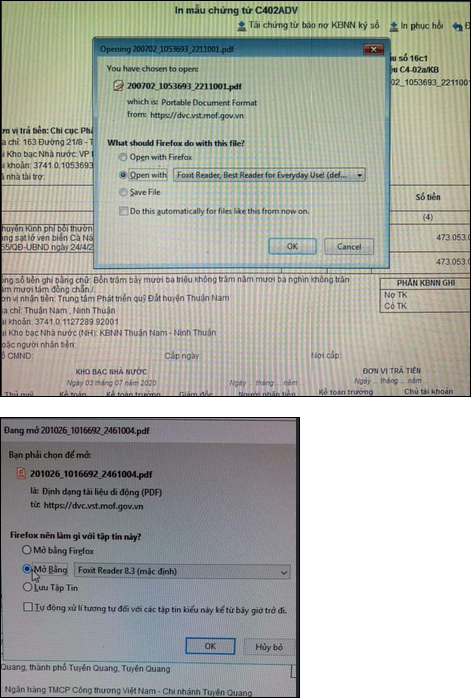 Bước 2: Sau khi tải chứng từ Giấy báo nợ về máy, bạn mở chứng từ bằng Foxit hoặc Acrobat để in Giấy báo nợ