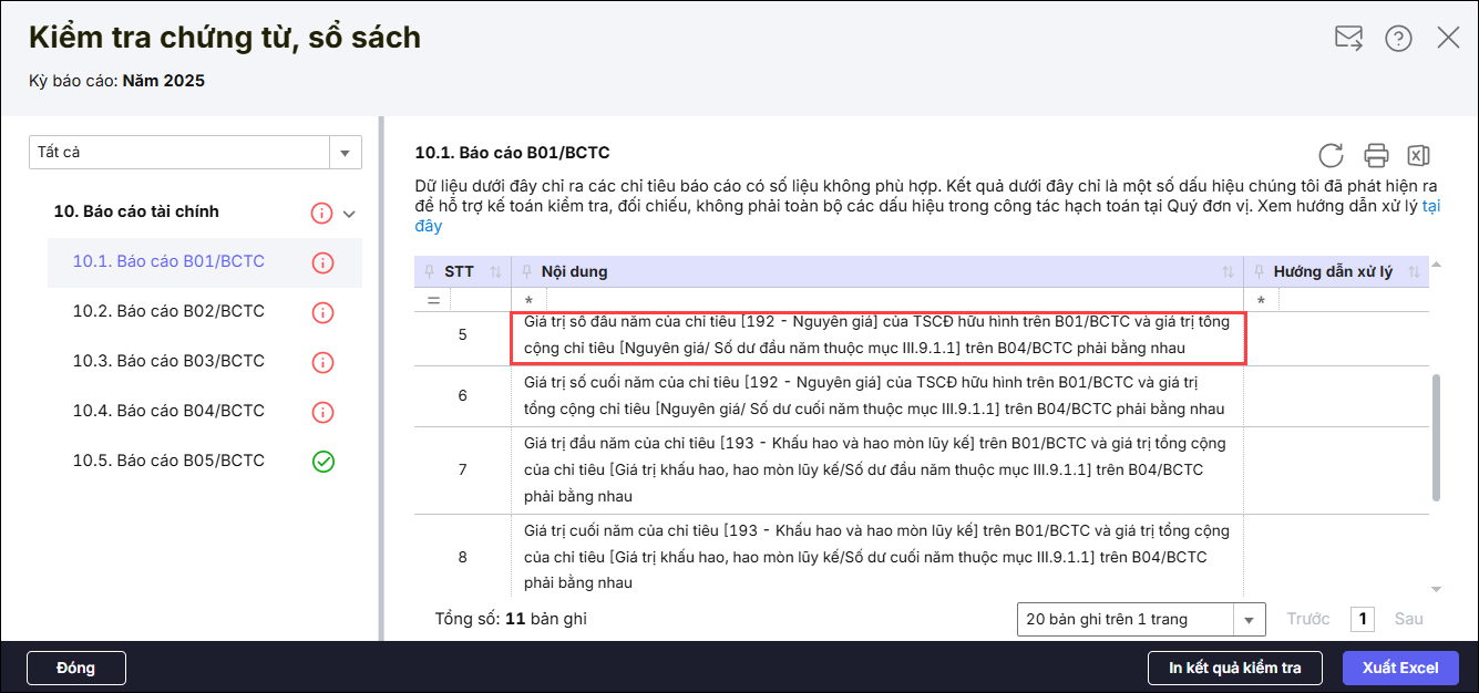 Bài viết này hướng dẫn anh/chị cách kiểm tra và xử lý khi thực hiện chức năng kiểm tra báo cáo tài chính theo hướng dẫn tại đây, hoặc nhấn Kiểm tra báo cáo tài chính sau khi Lập báo cáo tài chính, hoặc nộp báo cáo cấp trên thấy phần mềm cảnh báo “Giá trị số đầu năm của chỉ tiêu [192 – Nguyên giá] của TSCĐ hữu hình trên B01/BCTC và giá trị tổng cộng chỉ tiêu [Nguyên giá/ Số dư đầu năm thuộc mục III.9.1.1] trên B04/BCTC phải bằng nhau”.