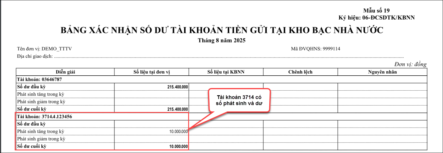 - Tài khoản NH, KB, chọn tài khoản tài khoản ngân hàng cần kiểm tra( ví dụ :3714.4.123456) hoặc chọn tham số là tất cả