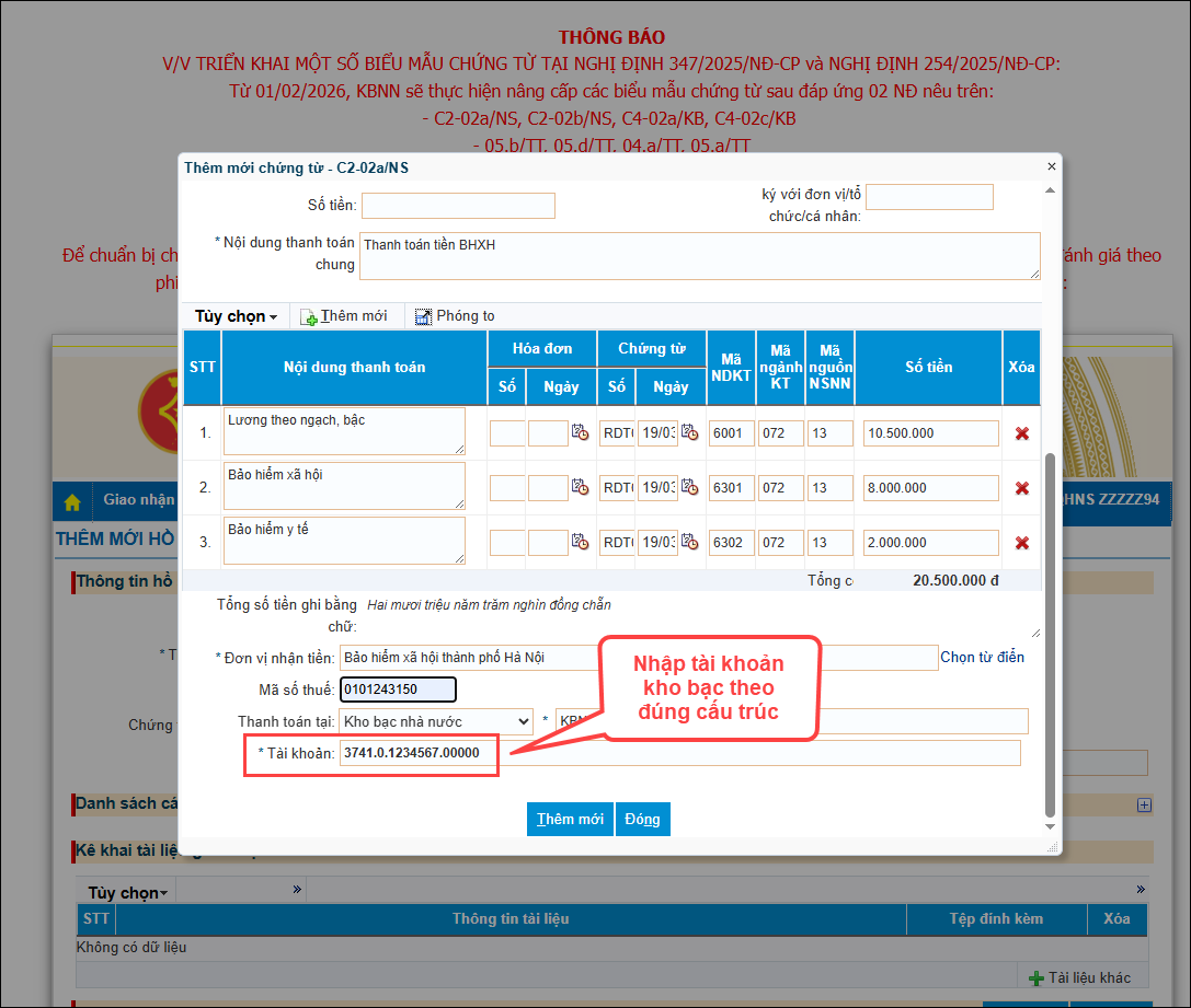 Do Tài khoản Kho bạc có đối tượng nhận tiền chưa đúng định dạng của tài khoản mở tại kho bạc