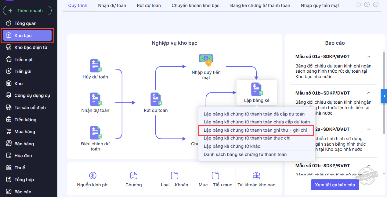 Bài viết hướng dẫn quy trình và thao tác trên phần mềm nghiệp vụ lập bảng kê ghi thu – ghi chi ,giúp kế toán thực hiện đúng thủ tục theo yêu cầu kiểm soát chi của kho bạc.