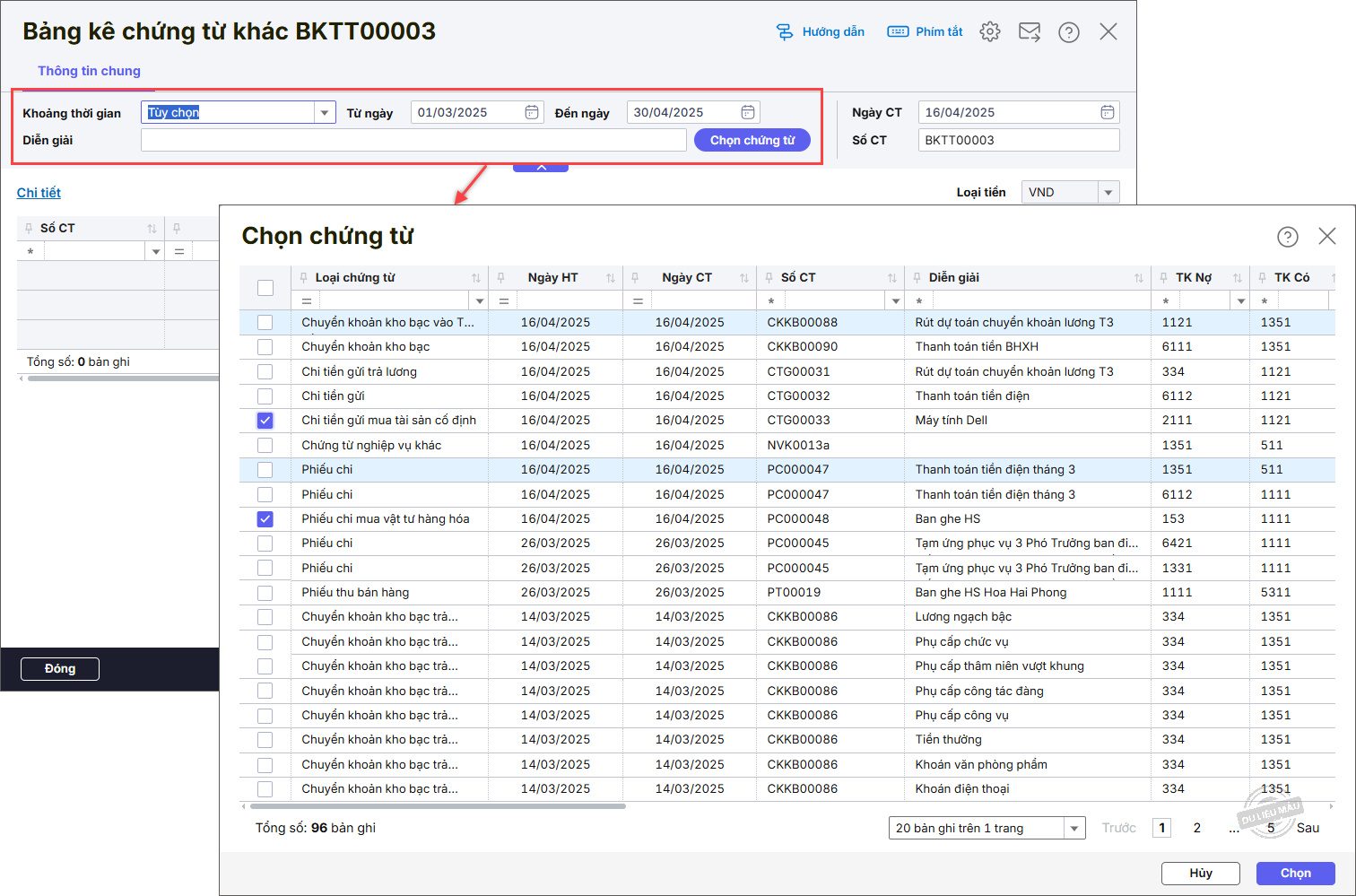 Bước 3: Nhấn Chọn chứng từ.