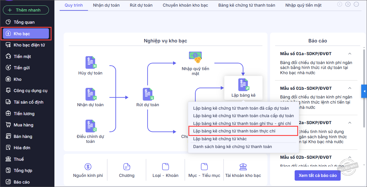 - Nội dung bài viết bao gồm các bước thực hiện Lập bảng kê thực chi và In các mẫu biểu