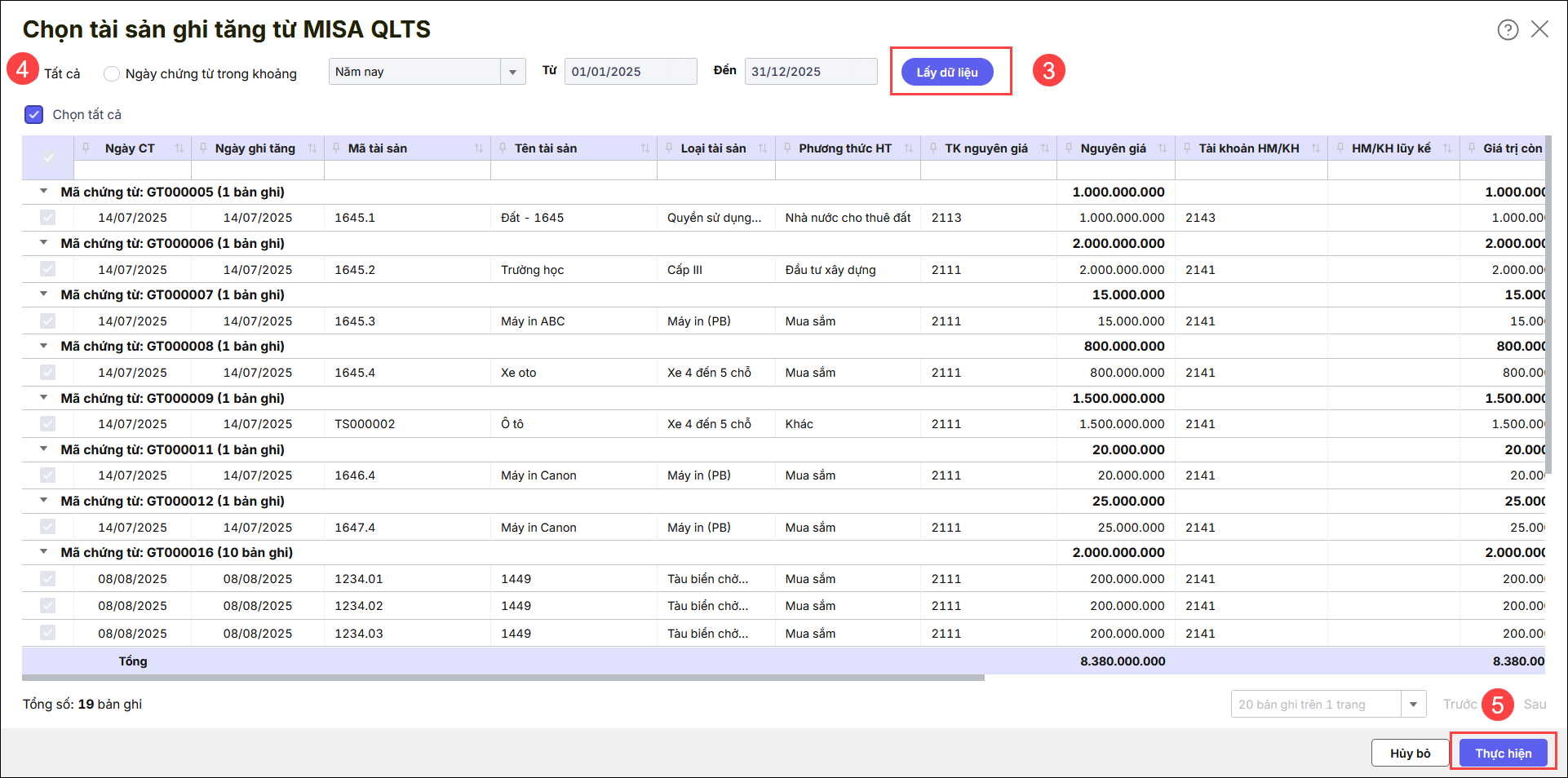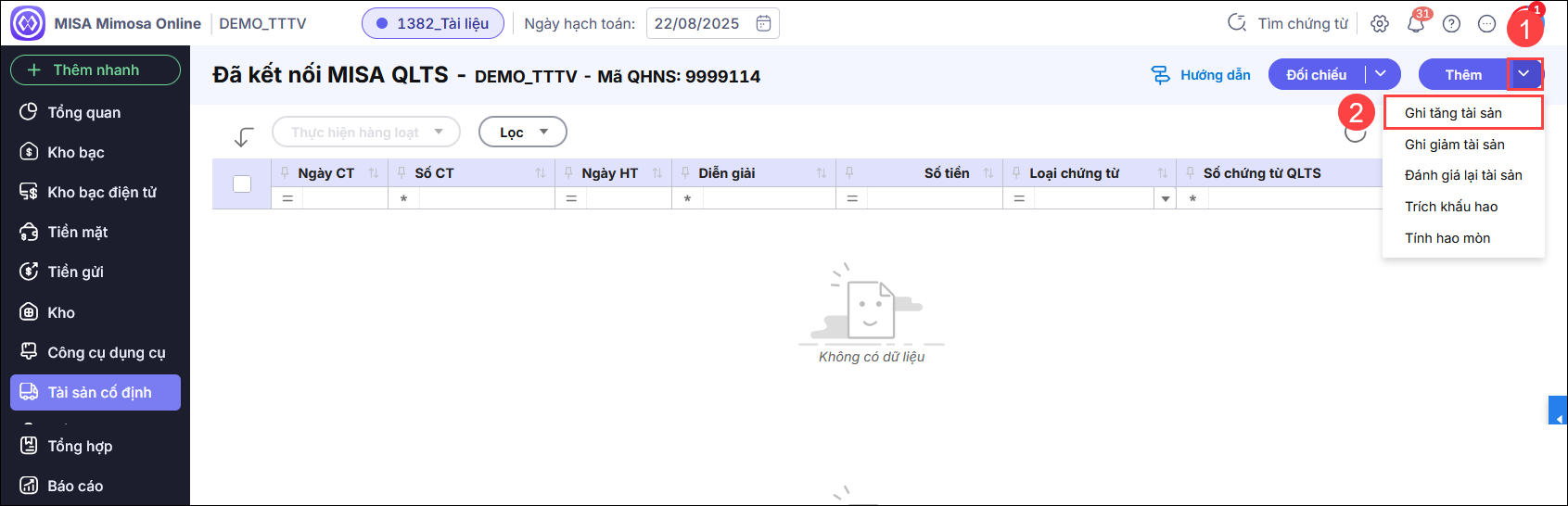 2. Lấy chứng từ ghi tăng từ MISA QLTS sang iGOV Kế toán