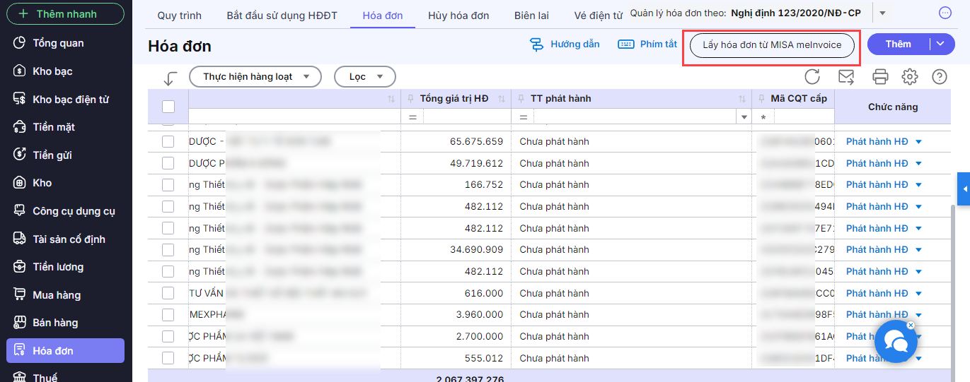 2. Nhấn Lấy dữ liệu từ MISA meInvoice.