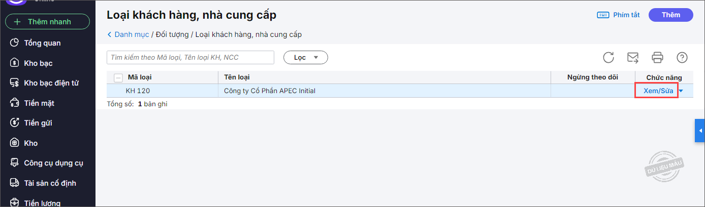 5. Kích đúp chuột hoặc chọn Xem/Sửa tại loại khách hàng, NCC cần sửa.