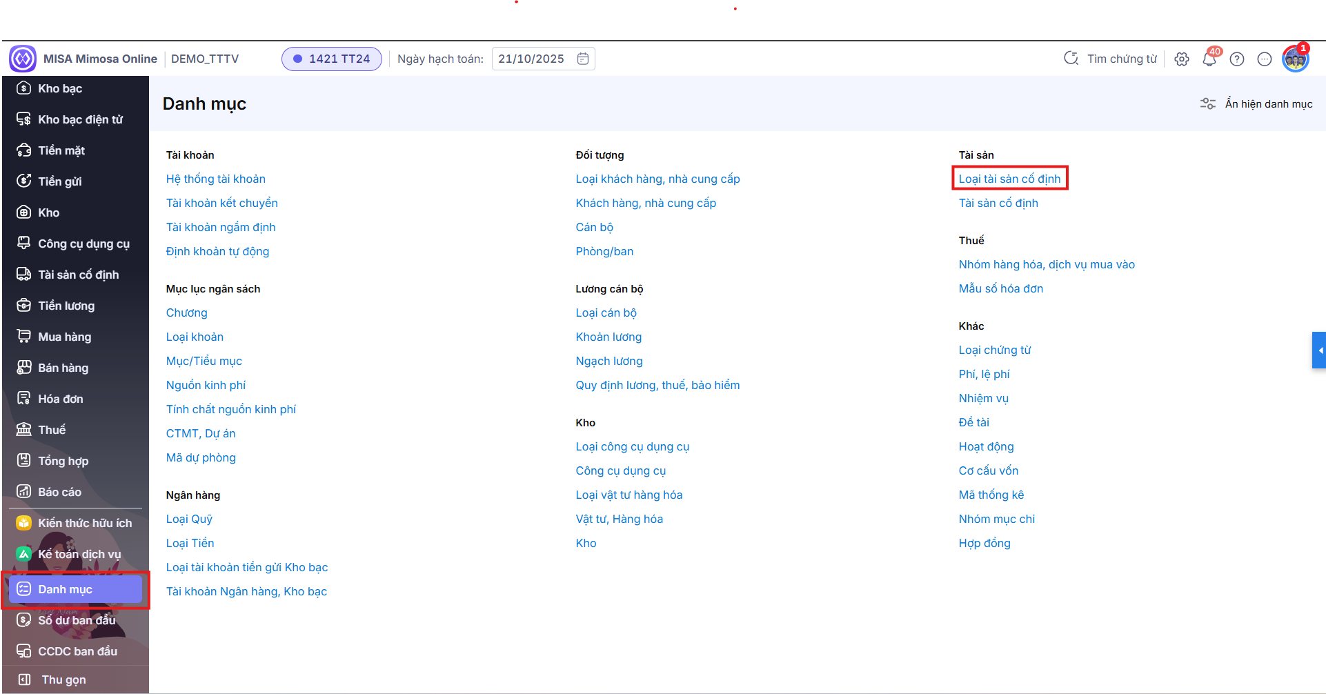Danh mục Loại tài sản cố định