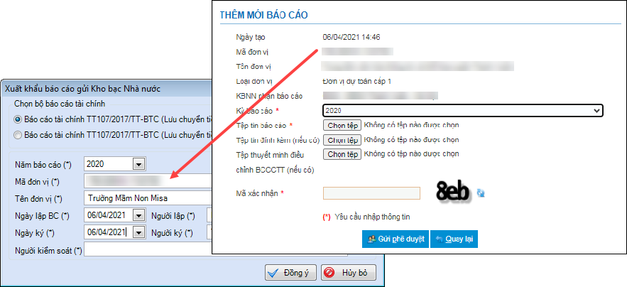 2.1 Mã đơn vị không đúng với Mã đơn vị trong tệp tin báo cáo XML nên không nộp được báo cáo
