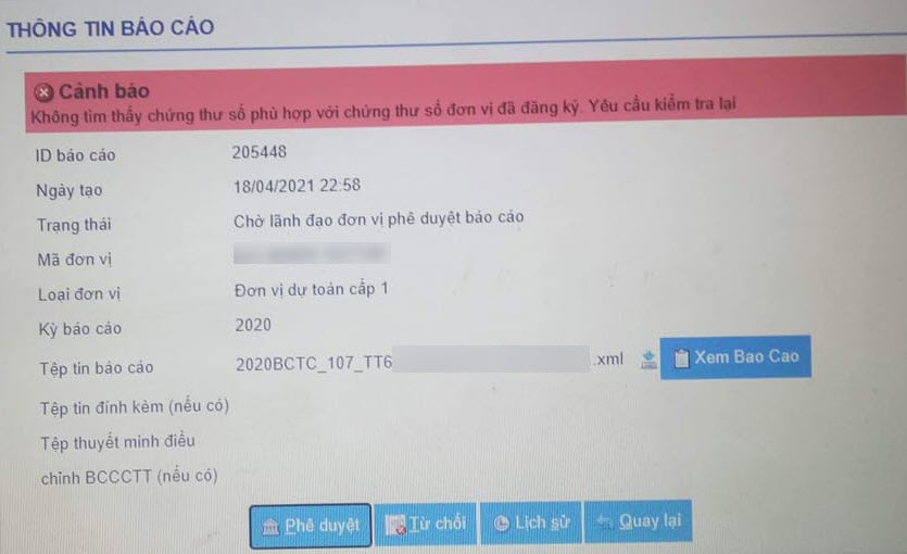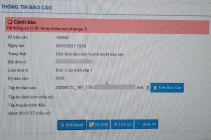 • Lỗi khi Lãnh đạo phê duyệt báo cáo trên trang TKT.