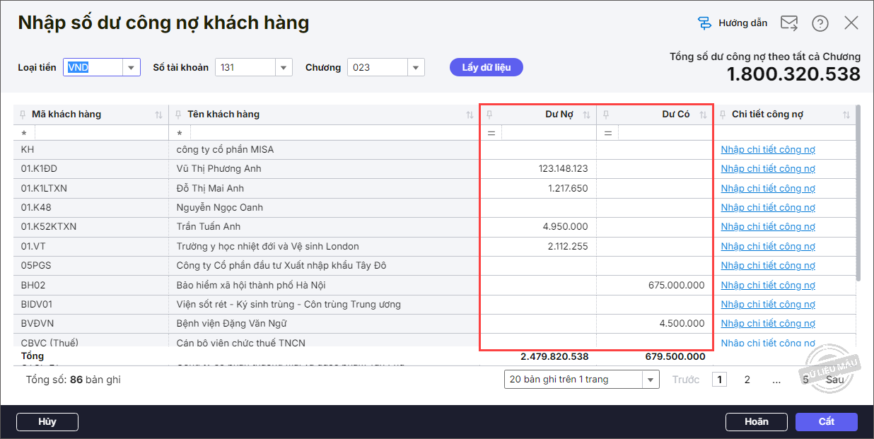 *Lưu ý: Trước khi nhập số dư công nợ khách hàng, cần khai báo Danh mục Khách hàng.