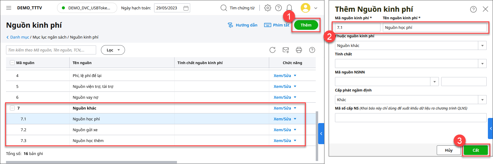 Lưu ý: Mã nguồn con bắt đầu bằng mã nguồn cha (Ví dụ nguồn khác mã là 7 thì mã các nguồn con sẽ là 7.1, 7.2,…), tham khảo hướng dẫn chi tiết tại đây.