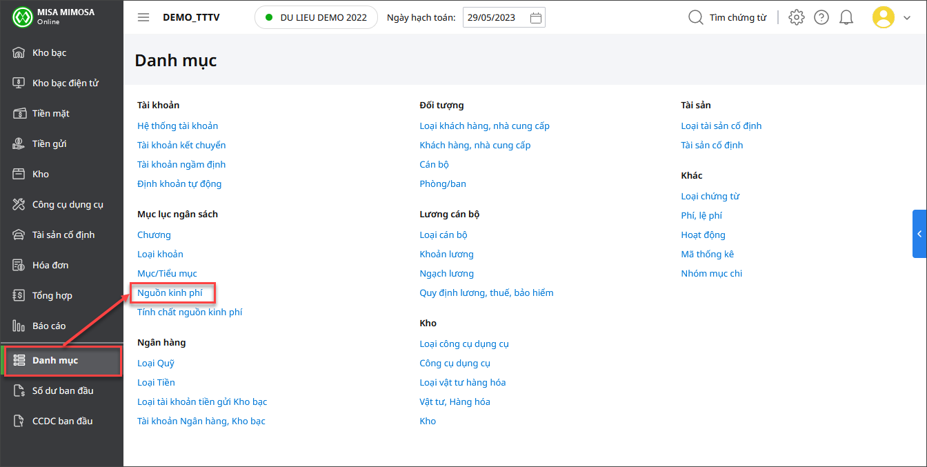 1. Đối với các khoản thu từ hoạt động sản xuất kinh doanh, dịch vụ, bạn có thể mở thêm nguồn con của nguồn khác tại Danh mục\Nguồn kinh phí.