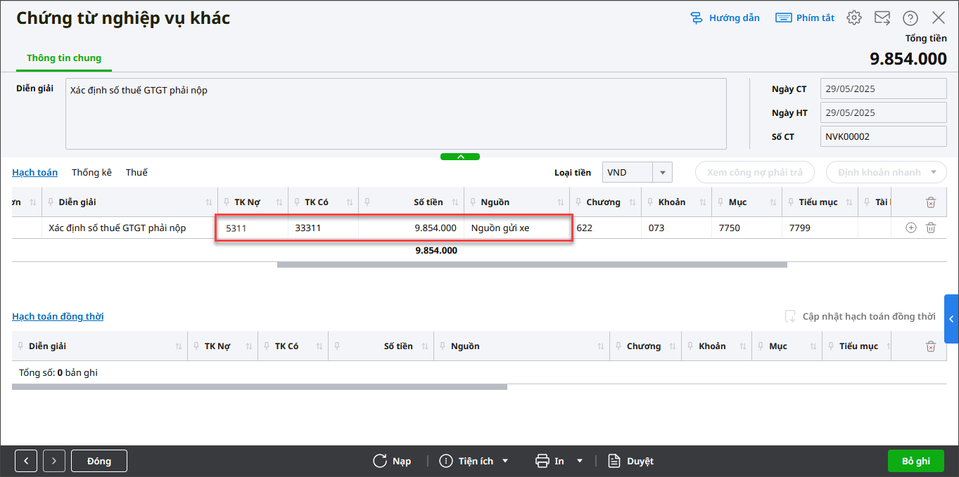 7. Ngày 29/05/2025, đơn vị trích 5% doanh thu nguồn gửi xe nộp thuế GTGT.