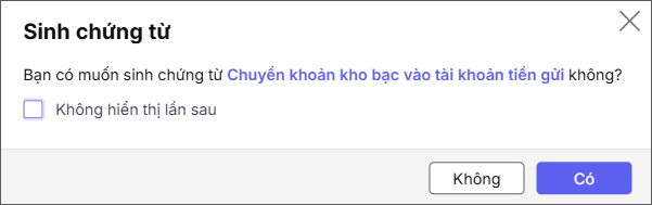 3. Nhấn Cất. Hệ thống hiển thị màn hình thông báo, tích chọn Chuyển khoản kho bạc vào tài khoản tiền gửi để trả lương. Nhấn Đồng ý.