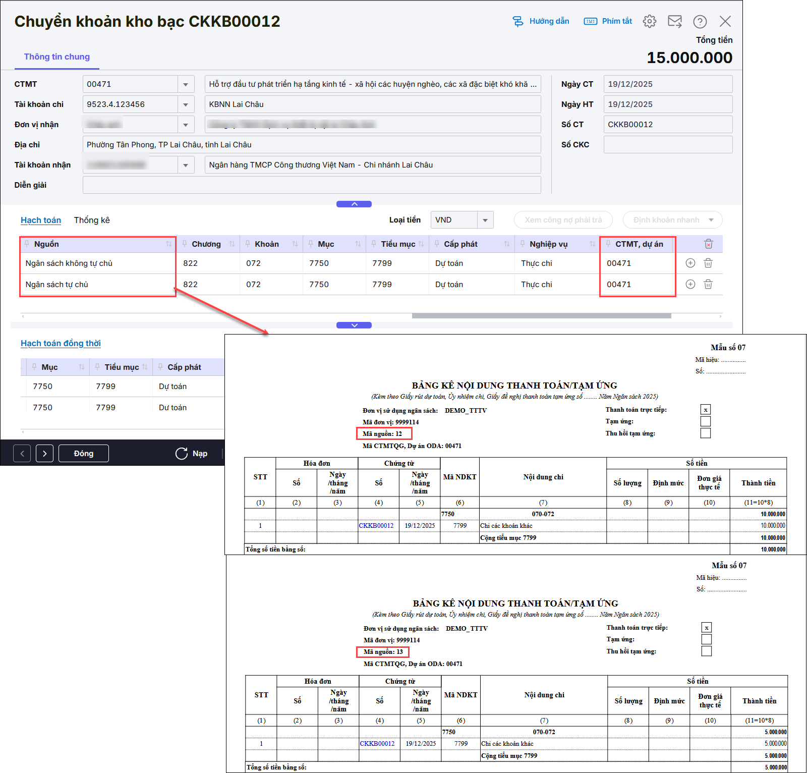 Do phát sinh nhiều CTMTDA: Khi bảng kê có nhiều Chương trình mục tiêu dự án khác nhau, hệ thống sẽ tách theo từng mã và nén chung vào một file duy nhất.