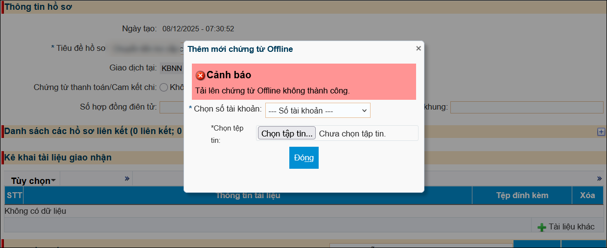 - Đơn vị không sử dụng phân hệ Kho bạc điện tử của MISA, mà xuất khẩu file xml (.zip) từ phần mềm rồi nhập khẩu lên DVC của KBNN thì báo “Tải lên chứng từ Offline không thành công”.