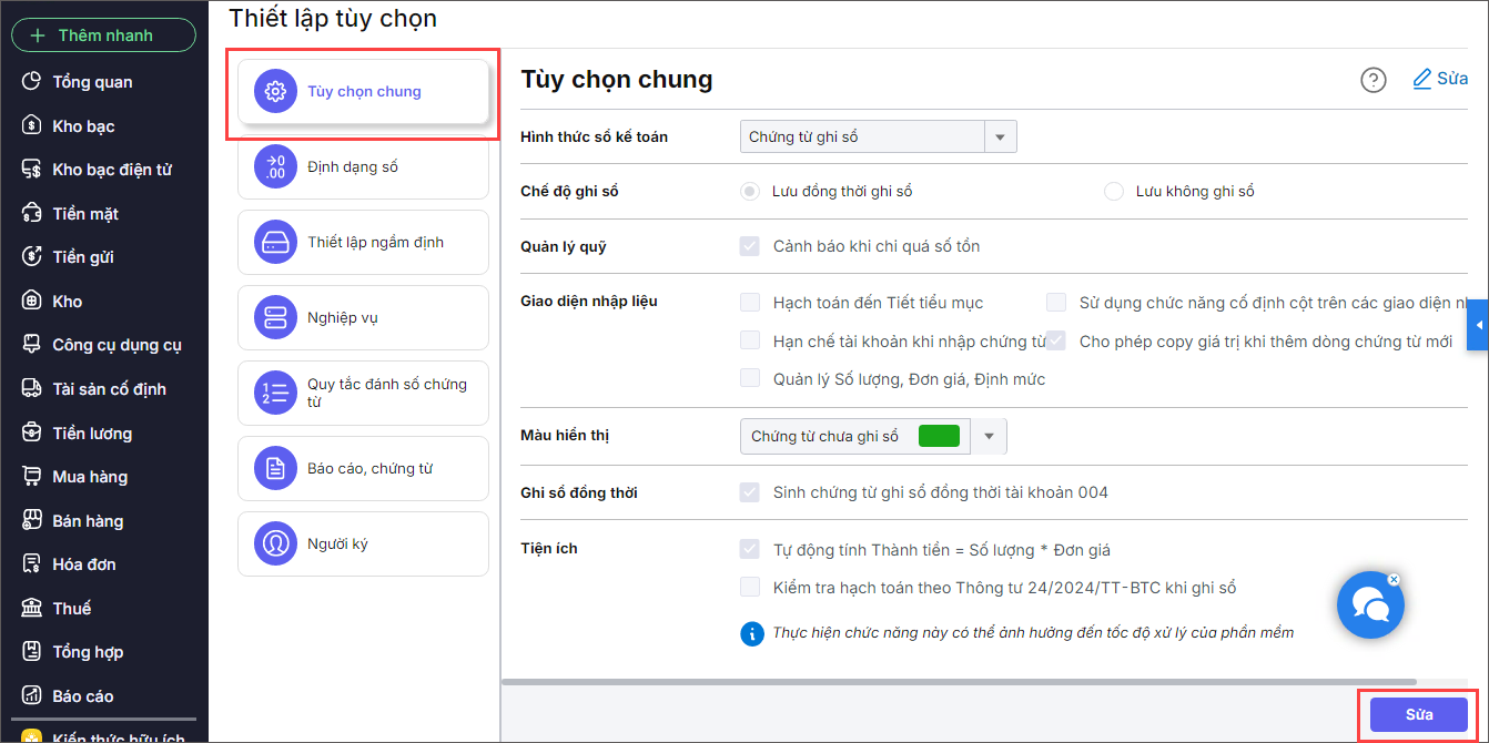 Bước 2: Chọn mục Tùy chọn chung. Nhấn Sửa.