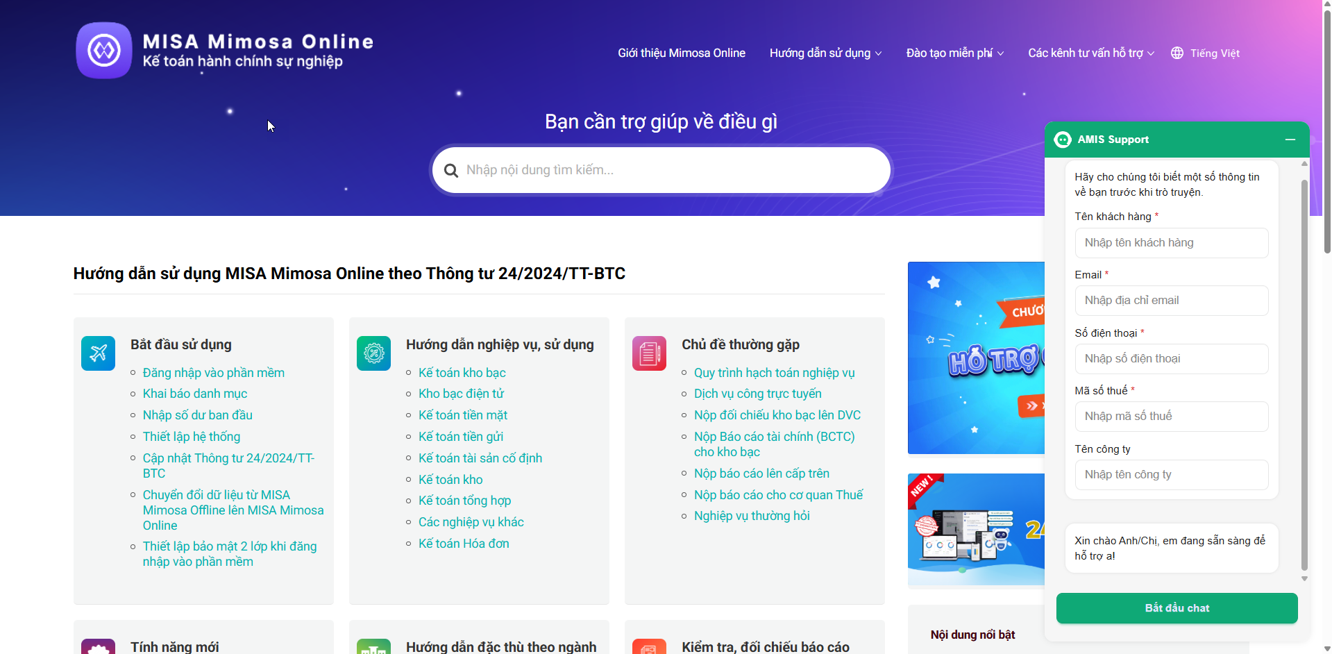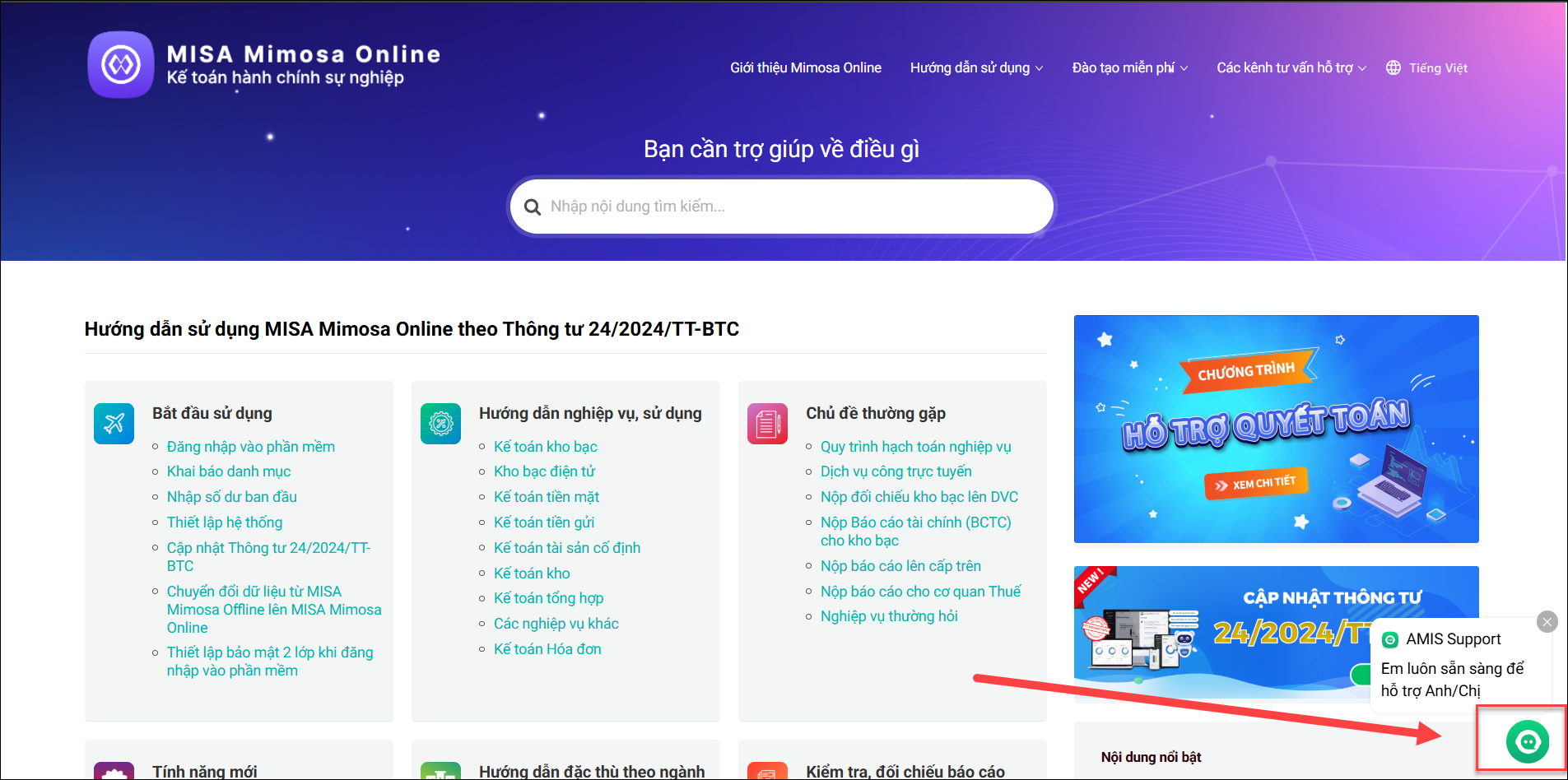 2.2 Cách 2: Sử dụng AMIS Support trên trang hỗ trợ