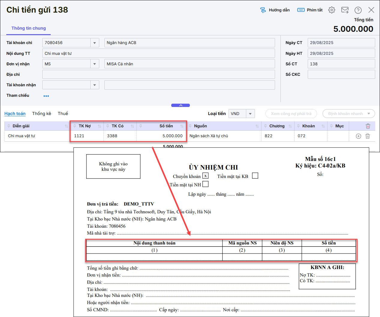 4. Tôi đã hạch toán chứng từ nhưng trên danh sách hiện số tiền bằng 0 và in ra phiếu chi hoặc ủy nhiệm chi (C4-02a/KB) không có số liệu (không có nội dung) thì làm như thế nào?