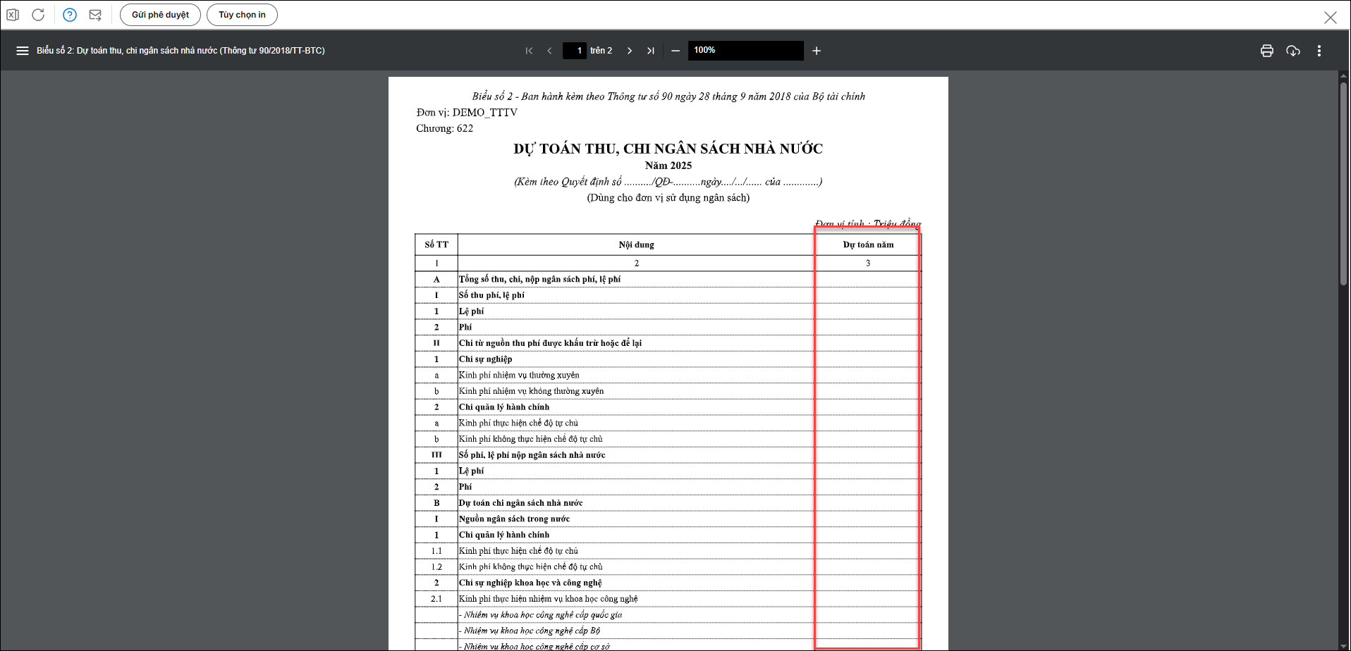 Tôi in Biểu số 02: Dự toán thu, chi ngân sách nhà nước (TT90/2018/TT-BTC), báo cáo không lên số liệu thì làm thế nào?