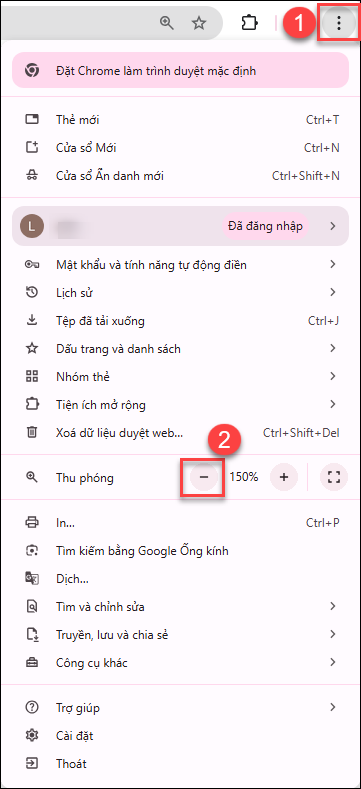 • Nhấn vào biểu tượng ba chấm () ở góc phải trình duyệt.