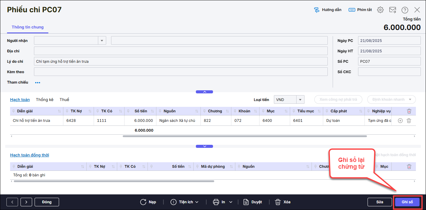 Nguyên nhân 4: Chứng từ chi tạm ứng đang ở trạng thái Bỏ ghi sổGiải pháp:
