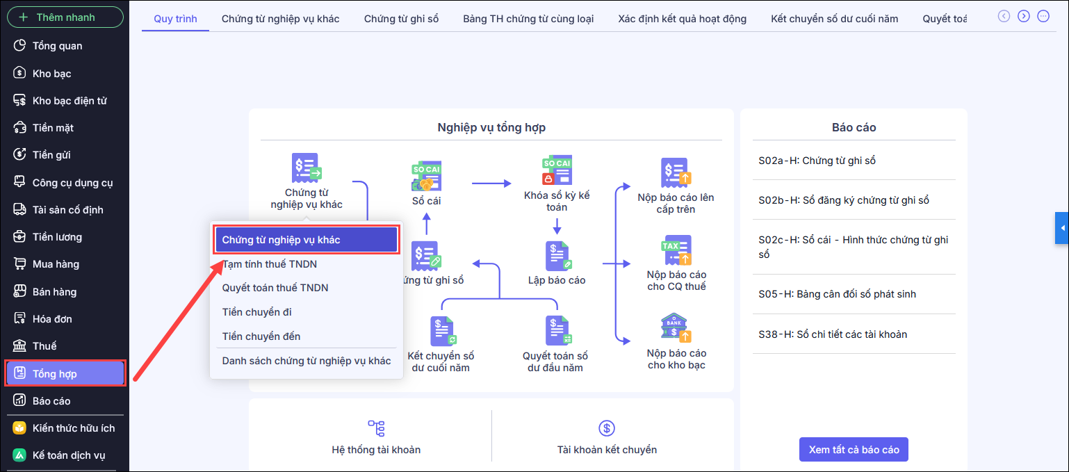 1. Vào phân hệ Tổng hợp\Chứng từ nghiệp vụ khác.