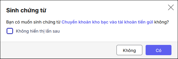 3. Chương trình sẽ hiển thị thông báo có muốn sinh chứng từ hạch toán hay không, bạn nhấn Có.
