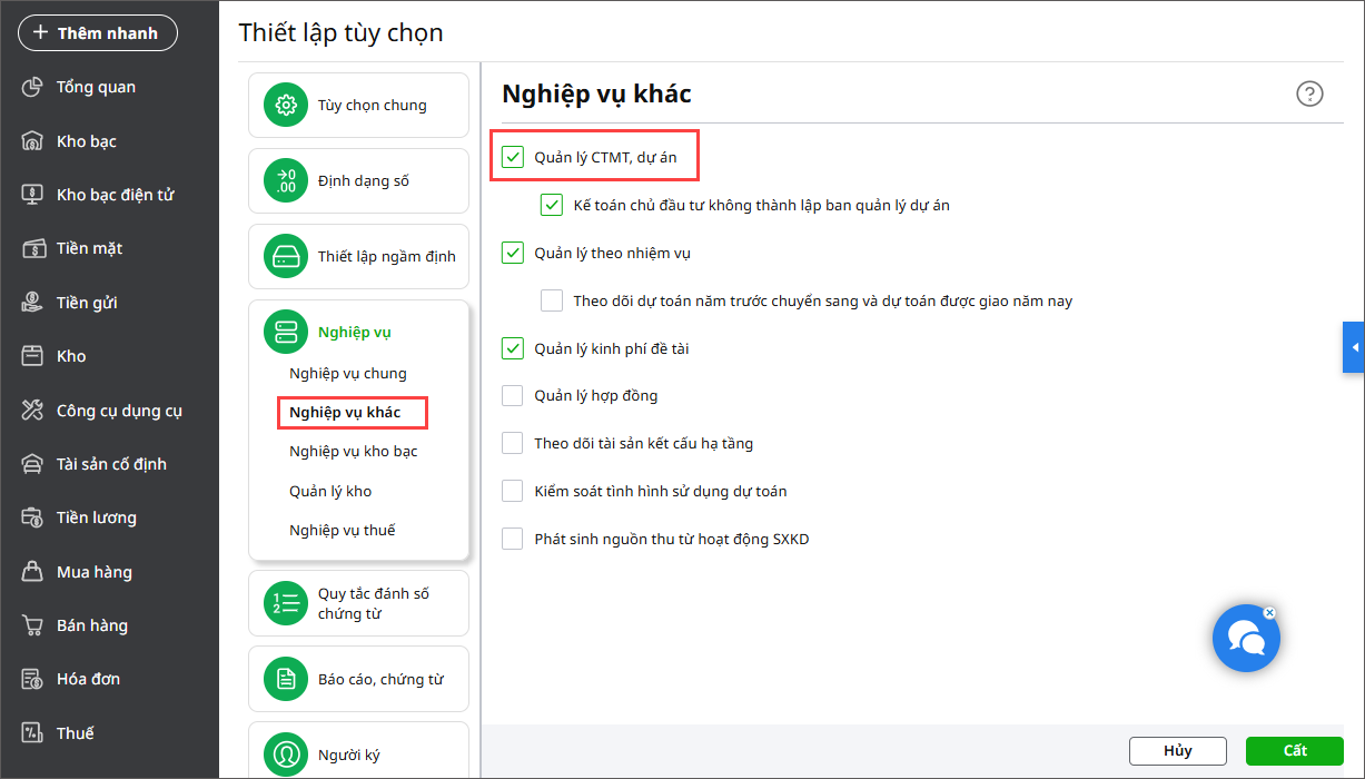 Bài viết hướng dẫn anh/chị bật tính năng quản lý Chương trình mục tiêu, Dự án (CTMT, dự án) trên phần mềm MISA iGOV Kế toán.