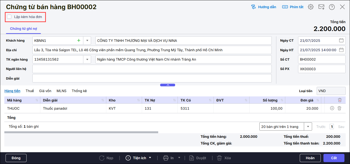 - Nguyên nhân 1: Lập chứng từ bán hàng chưa tích lập kèm hóa đơn.
