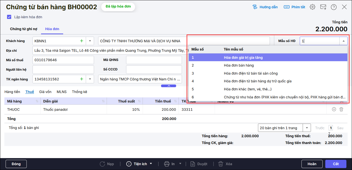 - Nguyên nhân 3: Loại hóa đơn chọn không phải là hóa đơn GTGT hoặc không chọn Hóa đơn bán hàng.