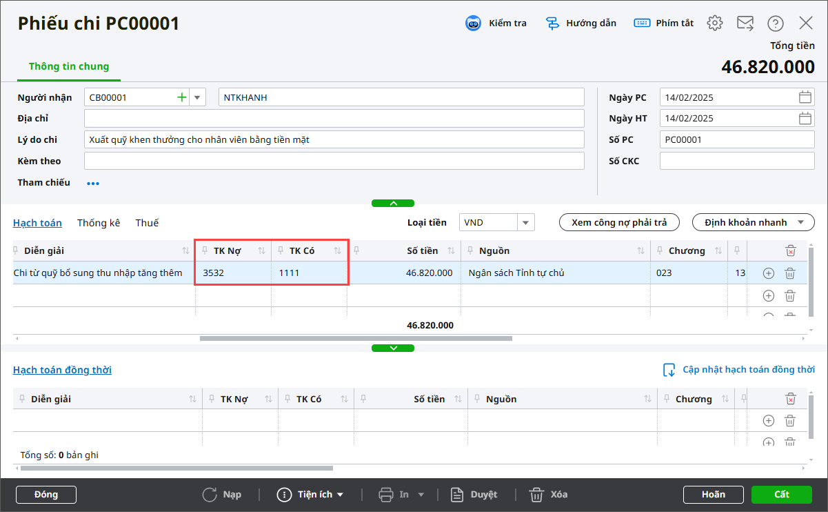 Đối với các quỹ phải trả (Quỹ bổ sung thu nhập, Quỹ khen thưởng, Quỹ phúc lợi):